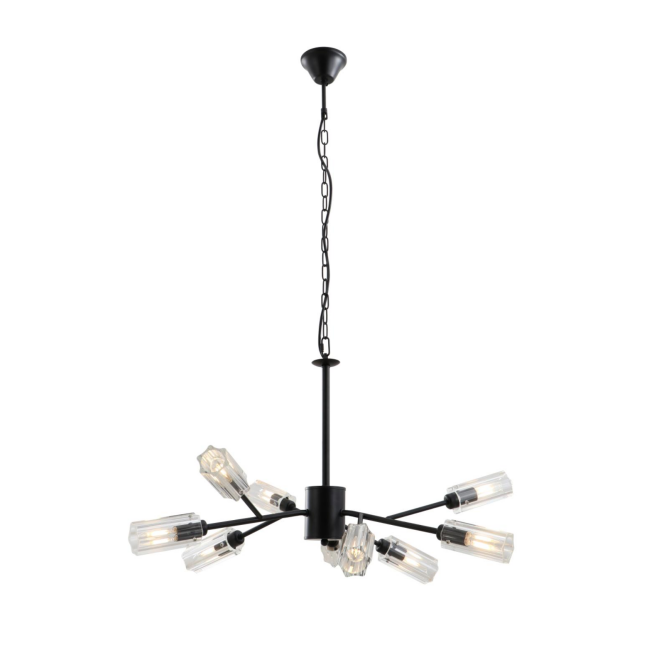 Lampu Kuat 9 Lights Glass Gold Chandelier: Mentol 9 E14 disusun dalam bentuk cawangan radial. Melalui pengiraan sudut yang tepat, ia mencapai pencahayaan 360 ° yang tidak terhalang dengan pencahayaan purata 300LUX, memenuhi keperluan pencahayaan komersial dan rumah dari ruang 12-20.
