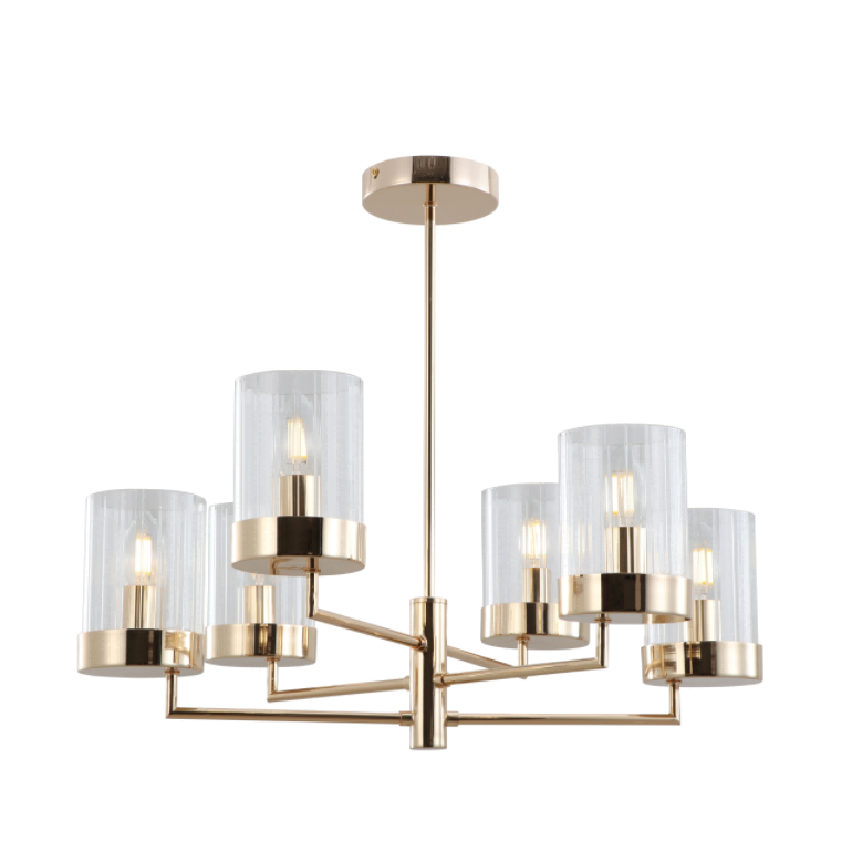 Dibuat dengan kaca berkumpul tinggi 5mm, reka bentuk ribbed menegak memastikan penghantaran cahaya 92% untuk pencahayaan yang bersemangat. Plat siling emas loket moden Liaran Moden Liaran Perancis dan tiub melengkung menggunakan aloi zink elektro, menawarkan rintangan kakisan dan kemasan luxe yang sejajar dengan standard perkakasan hiasan EU.